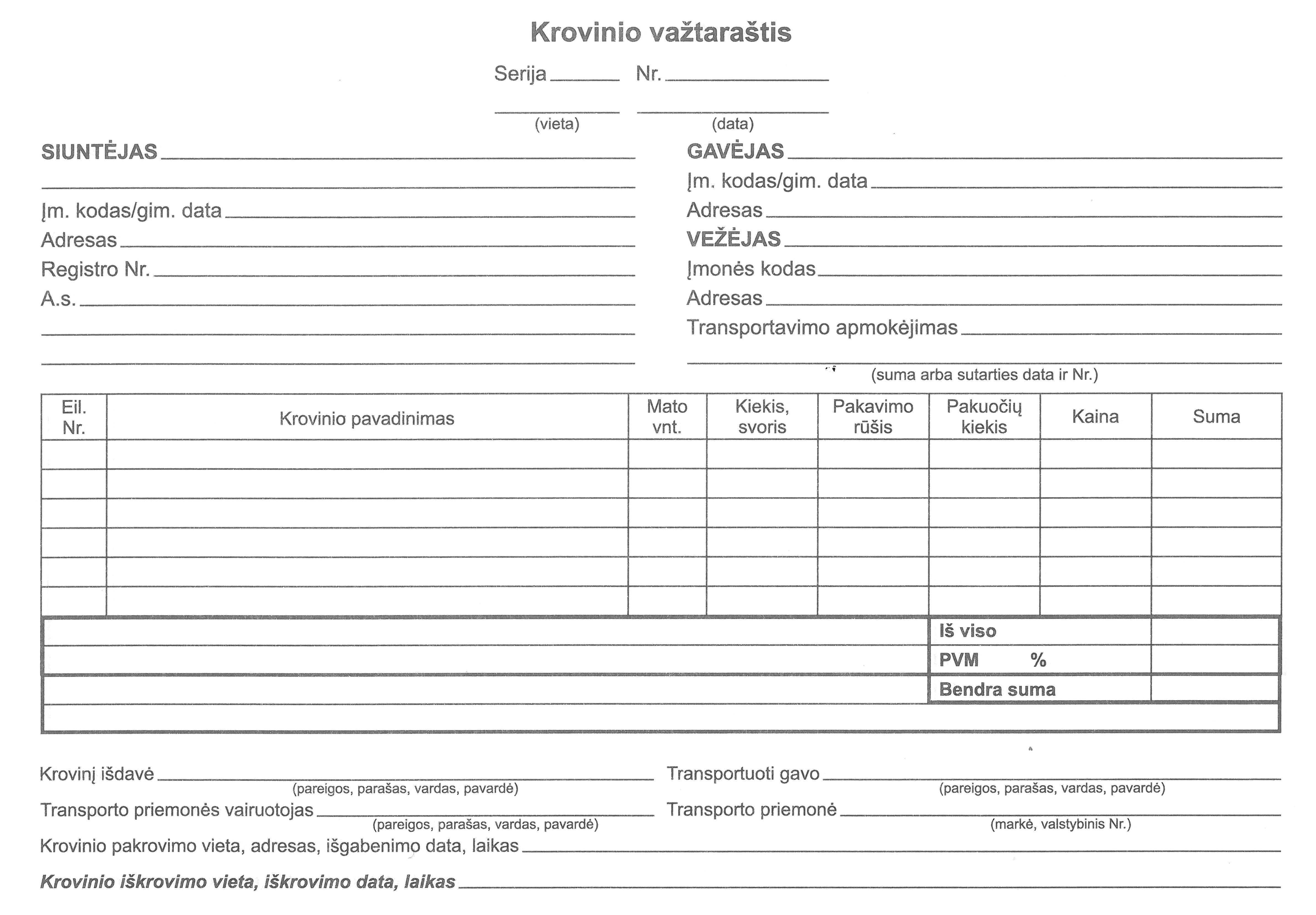 Krovinio važtaraštis A5, SC, 50 komplektų