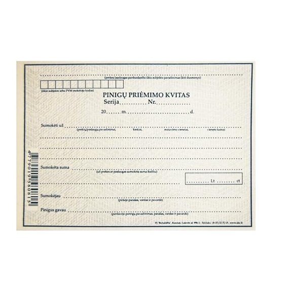 Pinigų priėmimo kvitas A5, 50 komplektų, nenumeruoti