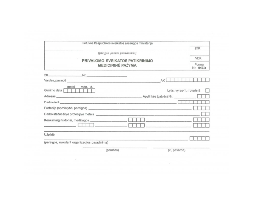 Privalomojo sveikatos patikrin.pažyma 047/a 500vnt