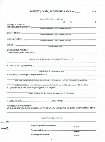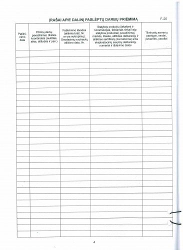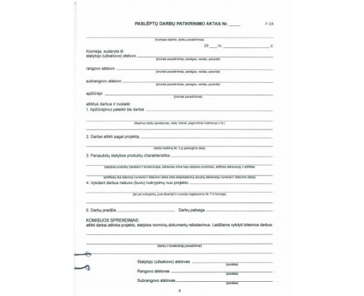 Statybos darbų žurnalo priedas A4 (F24-F25), paslėptų darbų patikrinimo aktai
