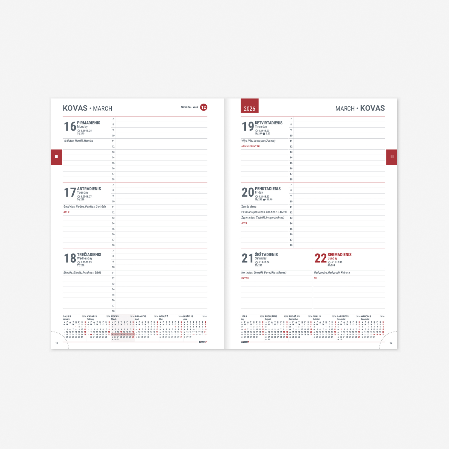 • Viršelis: paminkštintas, dirbtinė oda, 2021 metų logo