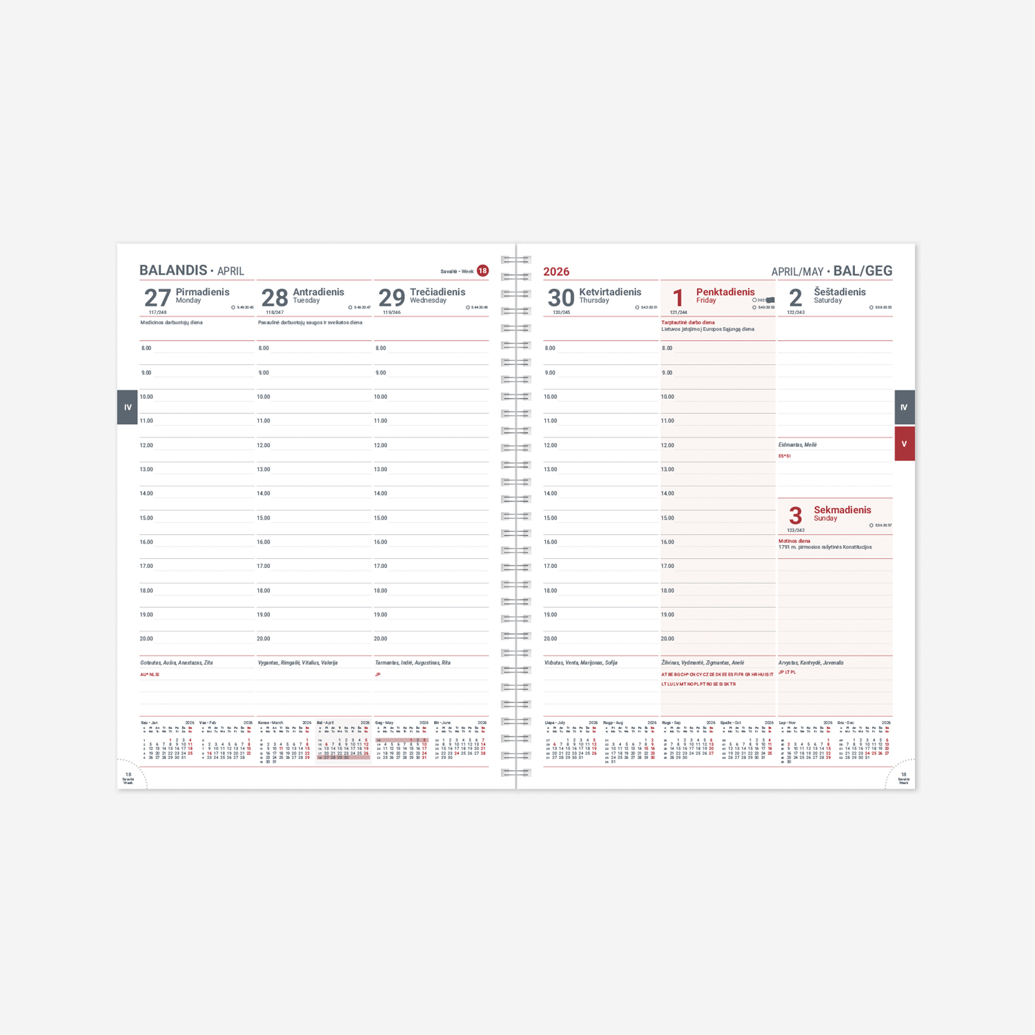 - Kalendorius FUTURA Spirex 2026, A4, PU, tamsiai mėlyna