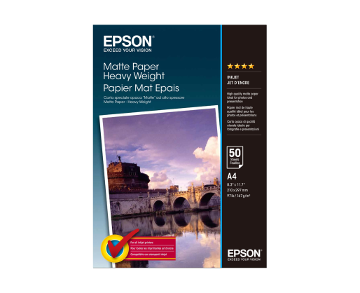 - Epson Matte Paper Heavy Weight, DIN A4, 167g/m², 50 Sheets 152316