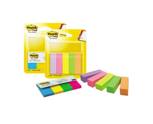 POST-IT popieriniai žymekliai Labai naudingi dokumentų klasifikavimui ir organizavimui. Spalvotos juostelės leidžia taikyti spalvinį kodavimą. Dideliame indekso rašymo plote galima surašyti tikslesnius komentarus, pastabas ir nurodymus. Matmenys 15 x 50 mm. 5 spalvų, 500 vienetų.