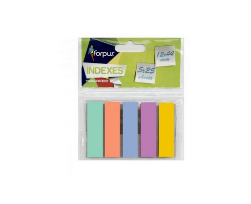 Plastikiniai indeksai-žymekliai 12x44mm Forpus 42039, 5x25 vnt, pastelinės spalvos