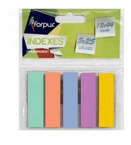 - Plastikiniai indeksai-žymekliai 12x44mm Forpus 42039, 5x25 vnt, pastelinės spalvos