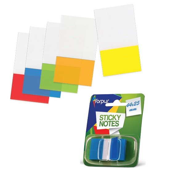 Plastikiniai indeksai-žymekliai, dalis žymeklio skaidri, dalis - spalvota, 44x25mm dydžio, 50 lapelių. FO42043
