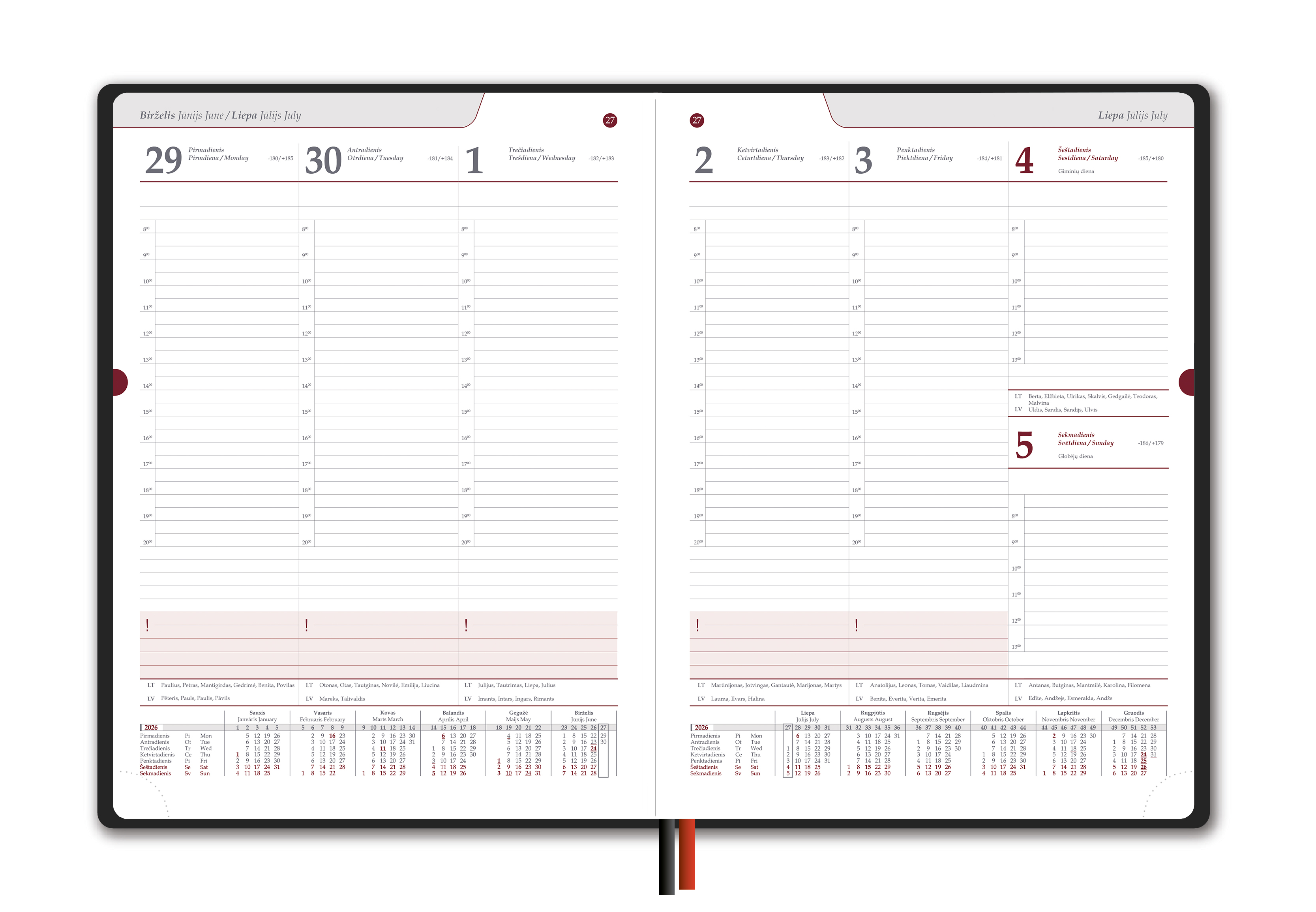 | Kalendoriaus tipas | Savaitės planavimas |