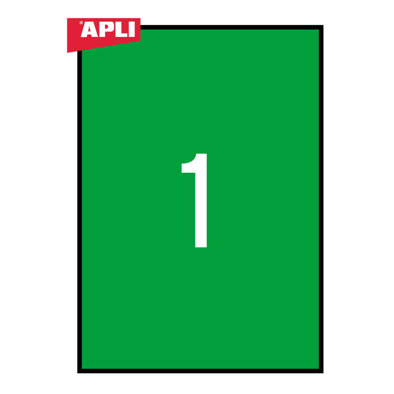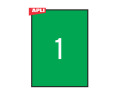 Etiketiniai lipdukai APLI, 210 x 297 mm, A4, 1 lipdukai lape, 20 lapų, žalia