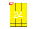 Etiketiniai lipdukai APLI, 70 x 37 mm, A4, 24 lipdukai lape, 20 lapų, geltoni