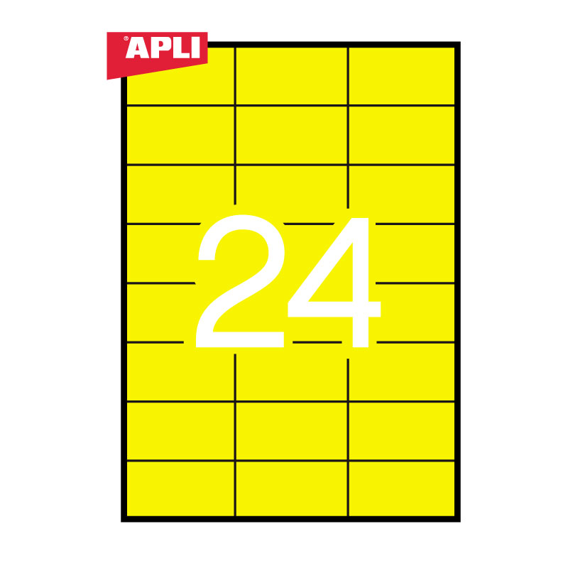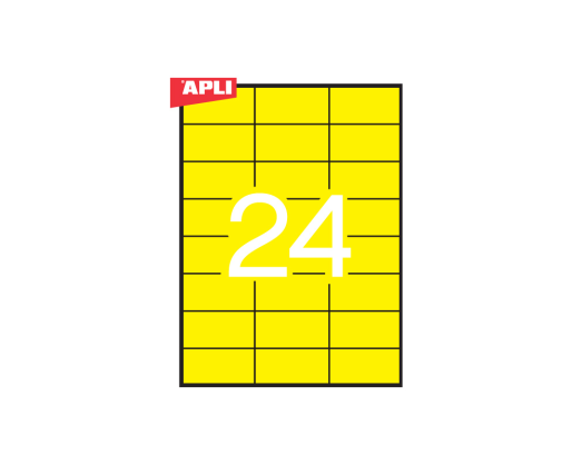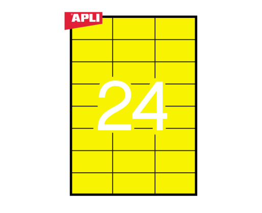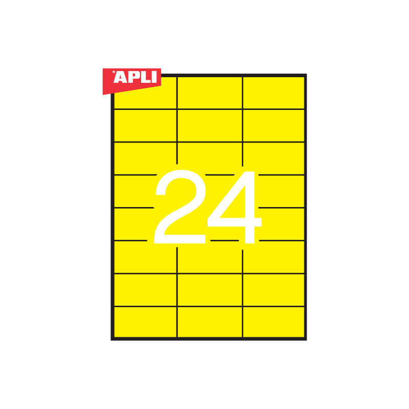 - Etiketiniai lipdukai APLI, 70 x 37 mm, A4, 24 lipdukai lape, 20 lapų, geltoni