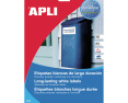 Etiketiniai lipdukai APLI Atsparios aplinkos poveikiui etiketės. Tinka kopijavimo aparatams, lazeriniams spausdintuvams. Etiketės pagamintos iš polisterio plėvelės. Sunkiai plyšta. Matmenys 70 x 37 mm. Skaidrūs. Lape 24 lipdukai. Pakuotėje 20 lapų.