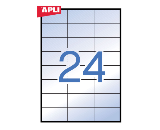 Etiketiniai lipdukai APLI, 70 x 37 mm, A4, 24 lipdukai lape, 20 lapų, skaidri