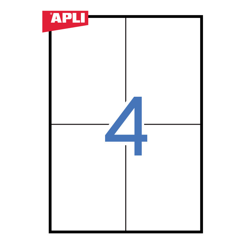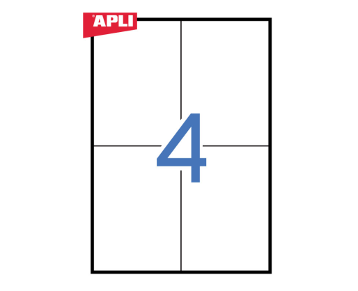 Etiketiniai lipdukai ALPI 105x148 mm, A4 formatas, 100 lapų, lape 4 vienetai etikečių. Baltos spalvos. Paprastas ir efektyvus etikečių spausdinimas su APLI Soft Pro SE- atsisiųskite nemokamai iš www.apli.comPrekės parametrai