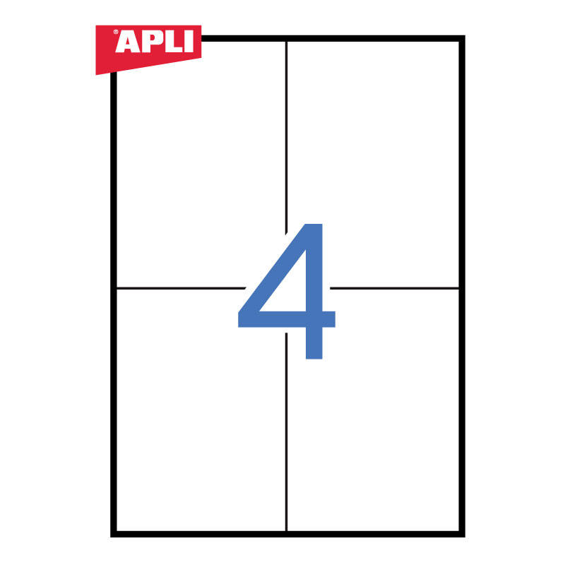 - Lipnios etiketės APLI, 105 x 148 mm, A4, 4 lipdukai lape, 25 lapai, balta