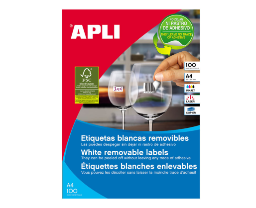 Nuimami etiketiniai lipdukai APLI. Tinka rašaliniams, lazeriniams spausdintuvams, kopijavimo aparatams. Bet kuriuo metu galima lengvai nuklijuoti. Nelieka jokių dėmių. Matmenys 105x148 mm. Lape 4 lipdukai. Dėžutėje 100 lapų. Paprastas ir efektyvus etikečių spausdinimas su APLI Soft Pro SE- atsisiųskite nemokamai iš www.apli.com