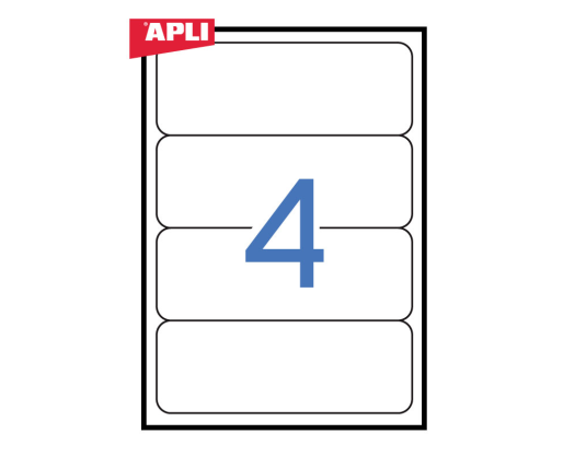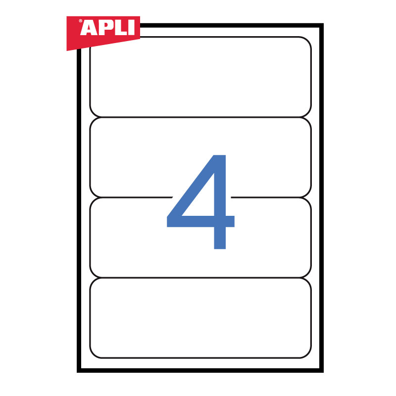 Lipnios etiketės APLI, 190 x 61 mm suapvalinti kamp., A4, 4 lipdukai lape, 25 lapai, balta