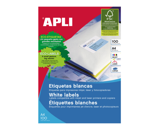 Etiketiniai lipdukai APLI Tinka rašaliniams ir lazeriniams spausdintuvams, kopijavimo aparatams. Matmenys 190x61 mm. Lape 4 lipdukai užapvalintais kraštais. Dėžutėje 25 lapai. A4 formato. Baltos spalvos. Paprastas ir efektyvus etikečių spausdinimas su APLI Soft Pro SE- atsisiųskite nemokamai iš www.apli.comPrekės parametrai