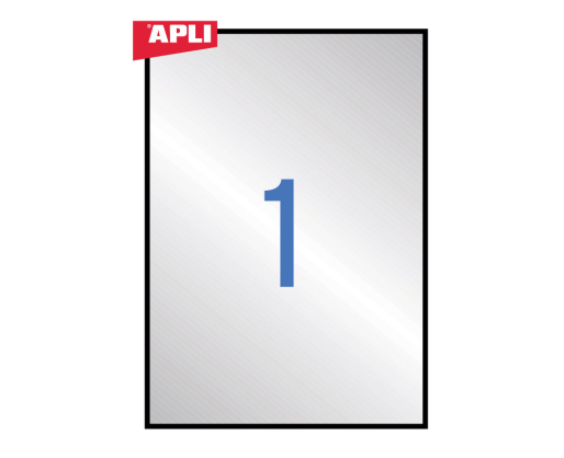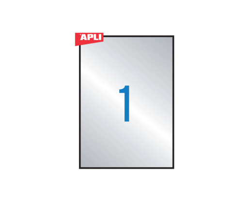Etiketiniai lipdukai Apli, 210 x 297 mm, 1 lipdukas lape, 20 lapų, sidabrinė. Atsparūs aplinkos pokyčiams, temperatūros svyramivams -20 C..+100 C. Tinka kopijavimo aparatams, lazeriniams spausdintuvams.