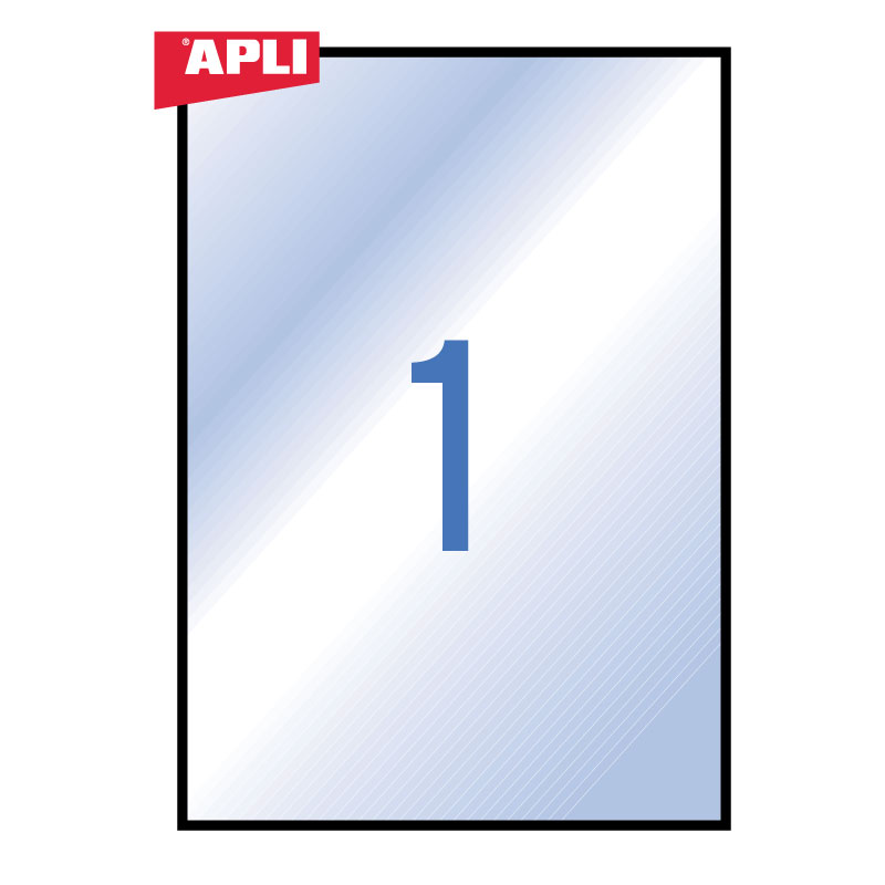 Lipnios etiketės APLI, 210 x 297 mm, A4, 1 lipdukai lape, 20 lapų, skaidri