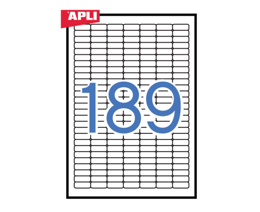 Nuimami etiketiniai lipdukai APLI. Tinka rašaliniams ir lazeriniams spausdintuvams, kopijavimo aparatams. Matmenys 25.4x10 mm. Lape 189 lipdukai. Dėžutėje 25 lapai. A4 formato. Baltos spalvos. Apvalintais kampais. Paprastas ir efektyvus etikečių spausdinimas su APLI Soft Pro SE- atsisiųskite nemokamai iš www.apli.comPrekės parametrai