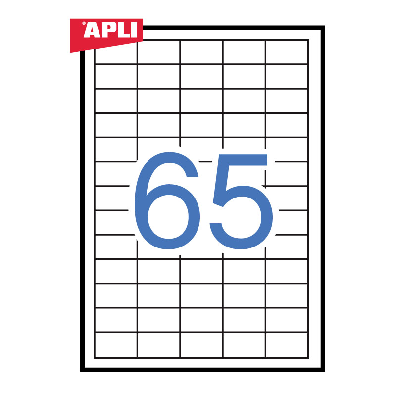 Etiketiniai lipdukai APLI Tinka rašaliniams ir lazeriniams spausdintuvams, kopijavimo aparatams. Matmenys 38 x 21.2 mm. Lape 65 lipdukai. Dėžutėje 100 lapų. Paprastas ir efektyvus etikečių spausdinimas su APLI Soft Pro SE- atsisiųskite nemokamai iš www.apli.com
