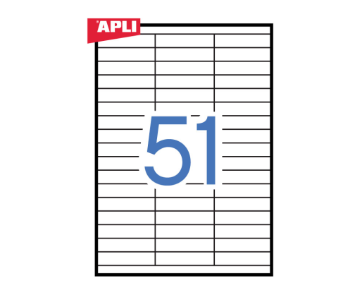 - Lipnios etiketės APLI, 70 x 16,9 mm, A4, 51 lipdukai lape, 100 lapų, balta