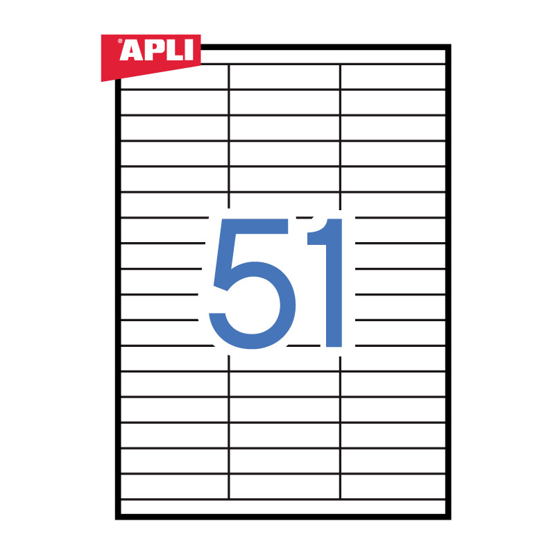 - Lipnios etiketės APLI, 70 x 16,9 mm, A4, 51 lipdukai lape, 100 lapų, balta