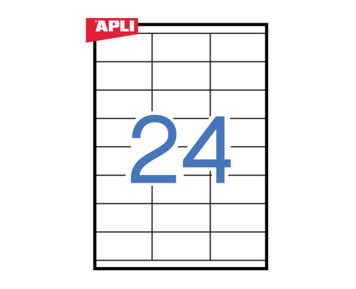 Etiketiniai lipdukai APLI Tinka rašaliniams ir lazeriniams spausdintuvams, kopijavimo aparatams. Matmenys 70 x 35 mm. Lape 24 lipdukai. Dėžutėje 100 lapų. Paprastas ir efektyvus etikečių spausdinimas su APLI Soft Pro SE- atsisiųskite nemokamai iš www.apli.com