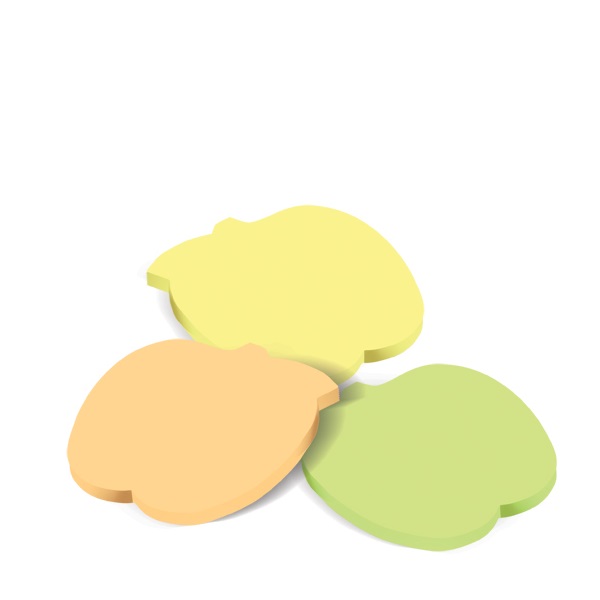 Išmatavimai 70x70 mm, 40 lapelių, geltonos spalvos, obuolio formos. FO42060