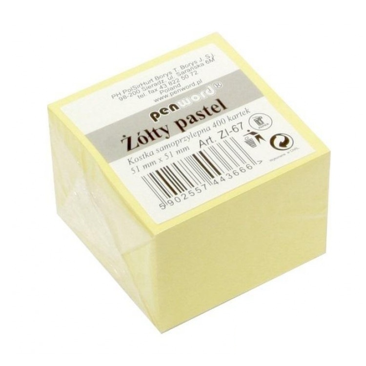 Lipnūs lapeliai PENWORD 51x51mm, geltoni 400l. PASTEL Nr.ZI-67