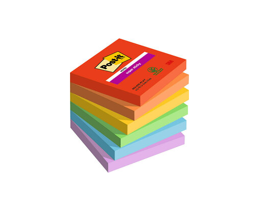 Lipnūs lapeliai Post-it Super Sticky 76 mm x 76 mm, pak. - 6 blokeliai, po 90 lapelių, ryškios spal