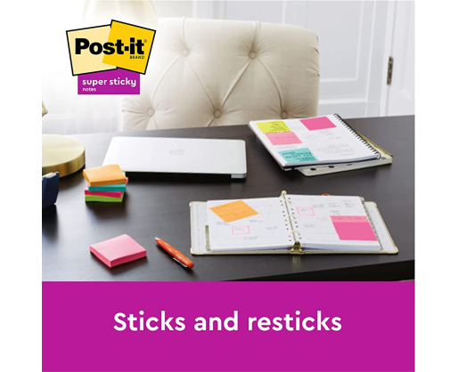 Laiko ir tarnauja ilgiau – 2 kartus stipriau prilimpa, palyginti su originaliais Post-it® lipniais lapeliais.Su „Post-it® Super Sticky" lipniais lapeliais galite akimirksniu užrašyti savo mintis – puikiai tinka kalbant telefonu arba turint pilnas rankas. Puikiai tinka vertikaliems arba sunkiai priklijuojantiems paviršiams, pvz., kompiuterių monitoriams, durims ir sienoms.Įamžinkite laimingus prisiminimus ir praskaidrinkite savo dieną ryškiomis „Playful“ kolekcijos spalvomis.Pagaminta naudojant 60 % atsinaujinančių išteklių klijus iš augalo, kuris atauga kasmet.