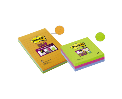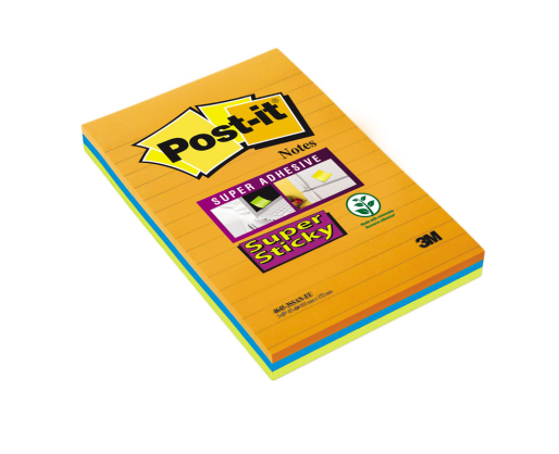 - Lipnūs lapeliai POST-IT SUPER STICKY ULTRA, 101x152mm, įvairios spalvos, 3 vnt./pak.