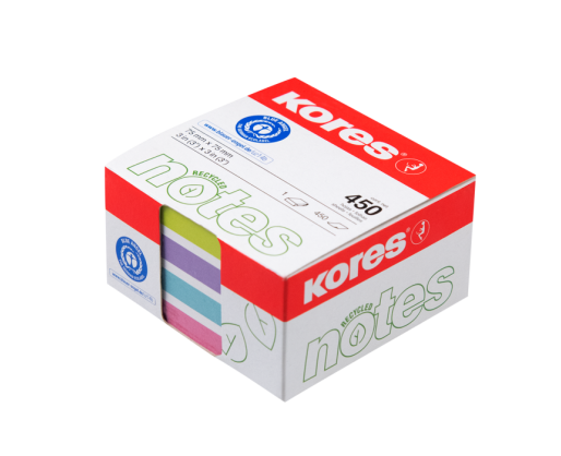 - Perdirbto popieriaus lipnių lapelių kubas KORES CUBO PASTEL 75x75mm 450 lapelių