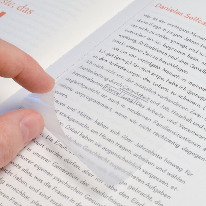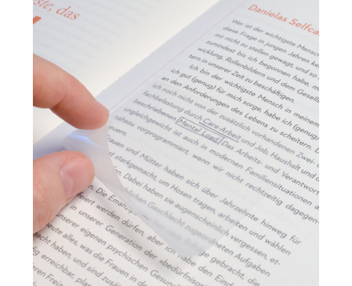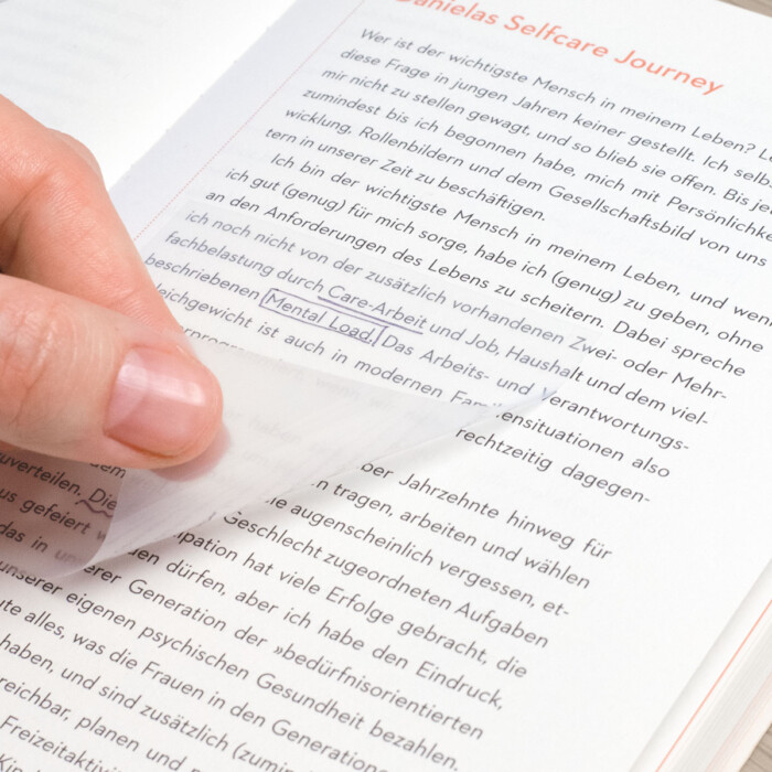 Visiškas skaidrumas: Puikiai matysite tekstą po lapeliu, todėl galėsite braižyti, pabraukti ar rašyti pastabas neužrašydami ant originalaus šaltinio.