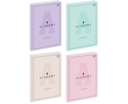 - Sąsiuvinis kietu viršeliu INTERDRUK ACADEMY PASTEL A5, 96 lapai langeliais 90g/m2