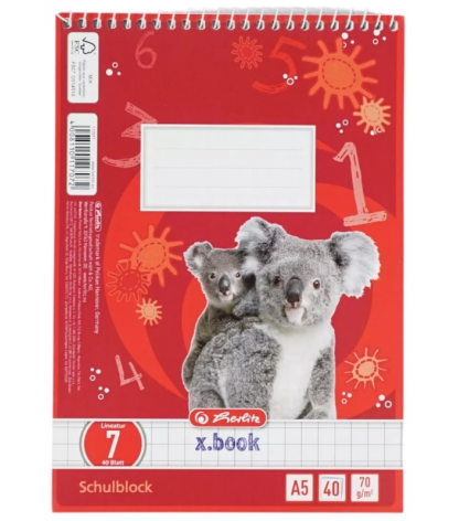 Bloknotas klijuotas viršuje. A5, A6 arba A7 formato. Langeliais. 50 lapų. Asorti viršelis, gali keistis nuo pavazduoto nuotraukoje. 55 g/m2