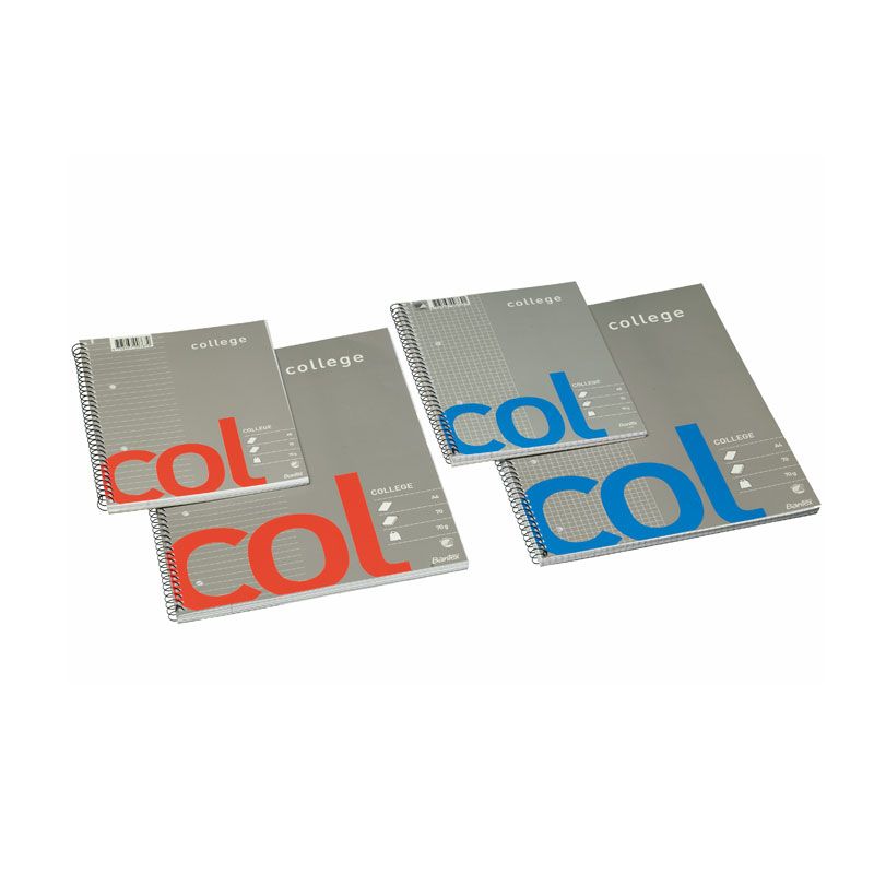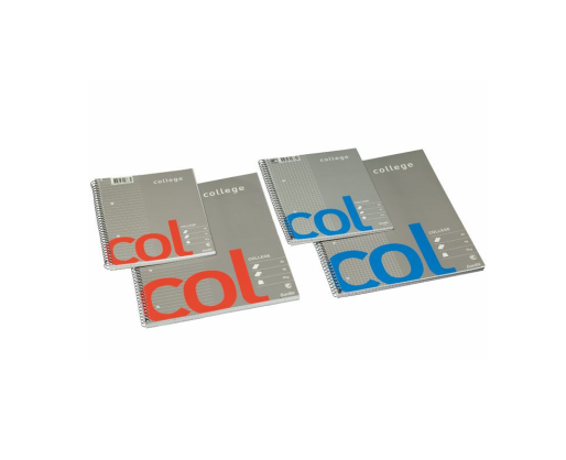 Sąsiuvinys su spirale COLLEGE. A4 arba A5 formatas. Langeliais. 70 lapų. Storis 70 g/m2. Perforuotas su keturiomis skylutėmis.