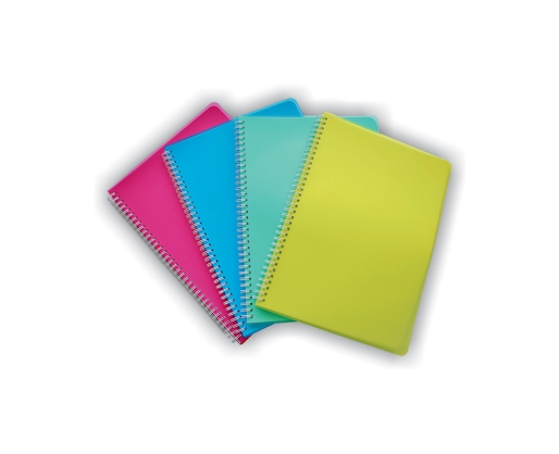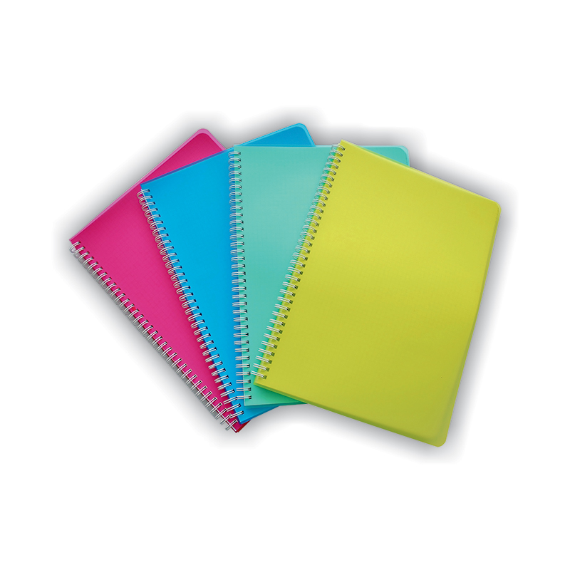 Bloknotas su spirale. A5 formatas. 96 lapai. Langeliais. Įvairių spalvų plastikiniai skaidrūs viršeliai.Prekės parametrai