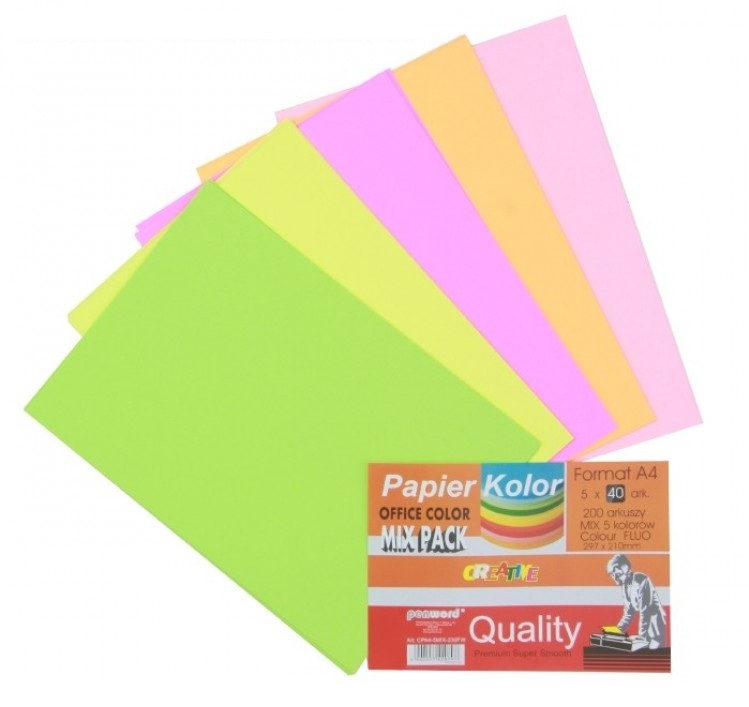 - Popierius PENWORD PREMIUM FLUO MIX A4/80g/200l. 5sp.x40l