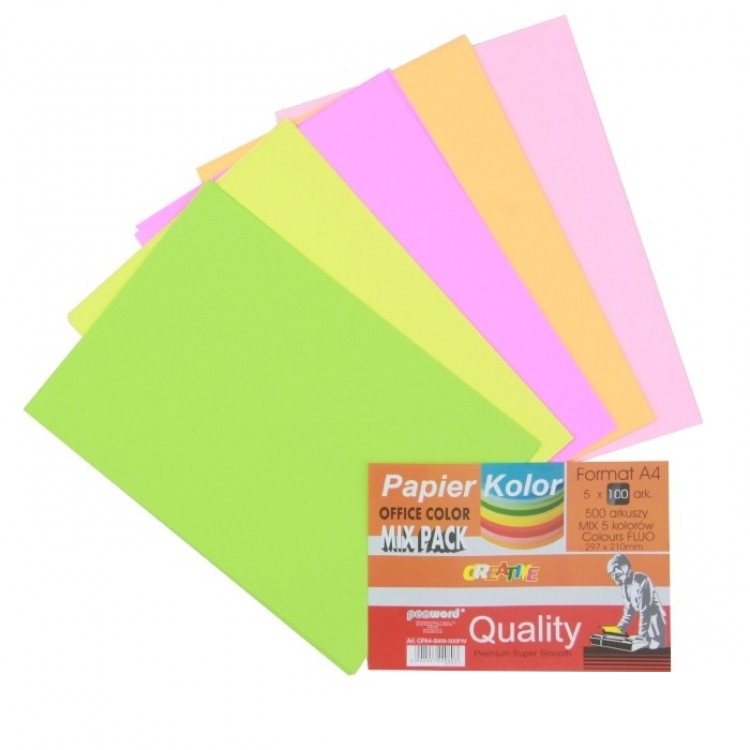 - Popierius PENWORD PREMIUM FLUO MIX A4/80g/500l. 5 spalvos po 100 lapų