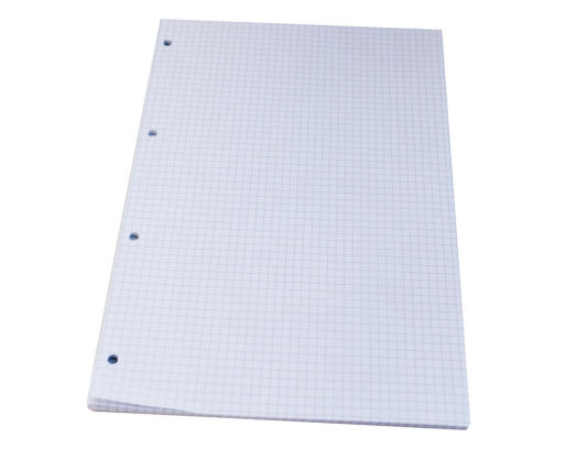 Formatas A4, klijuotas su skylėmis, 50 lapų, langeliais arba linija. Lapai su kietu pagrindu be viršelio.