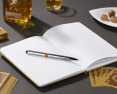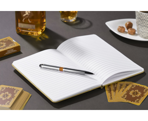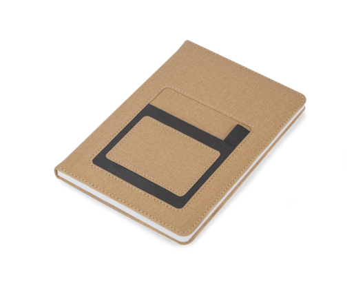 Užrašų knygelė FILO - elegancijos ir funkcionalumo derinys. Viršelis imituoja prabangų audinį, turi elastingą kišenę vizitinėms kortelėms ar smulkiems daiktams susidėti ir skirtą vietą rašikliui.