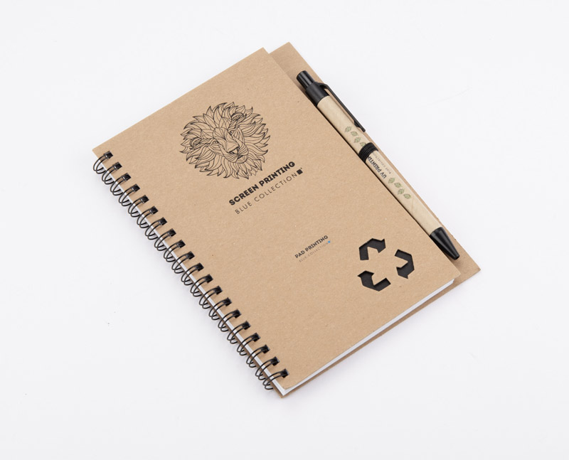 SERENO - tai spiralinė užrašų knygelė klasikiniu popieriniu viršeliu. Jame yra 70 liniuotų puslapių. Kartu su užrašų knygele pridedamas tušinukas su profiliuoto popieriaus korpusu. Rašiklio apdaila atitinka užrašų knygelės skirtuko spalvą. Rašiklio užpildas yra mėlynos spalvos.