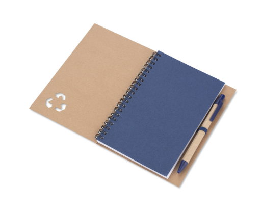 SERENO - tai spiralinė užrašų knygelė klasikiniu popieriniu viršeliu. Jame yra 70 liniuotų puslapių. Kartu su užrašų knygele pridedamas tušinukas su profiliuoto popieriaus korpusu. Rašiklio apdaila atitinka užrašų knygelės skirtuko spalvą. Rašiklio užpildas yra mėlynos spalvos.
