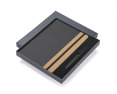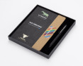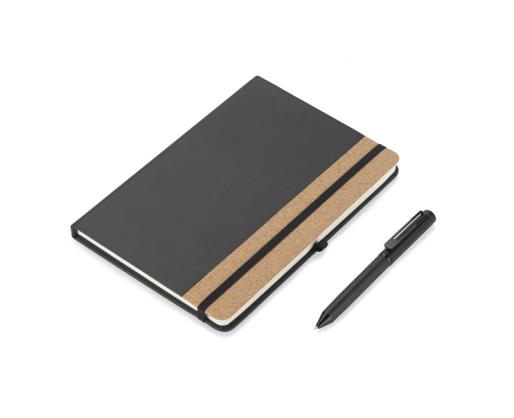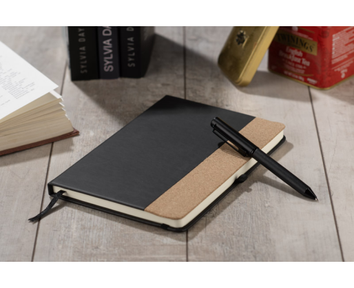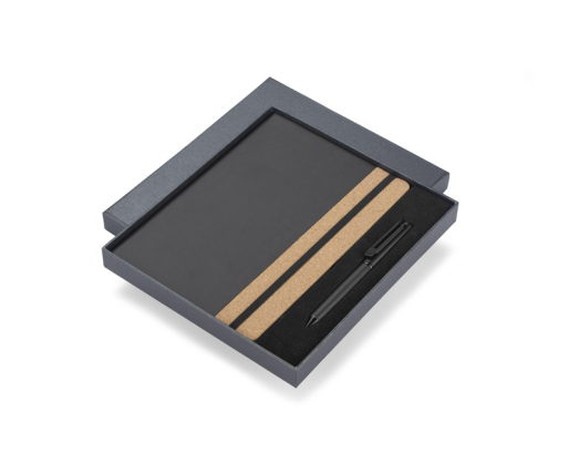 ZENIX knygelės rinkinys yra ideali dovana žmonėms, mėgstantiems elegaciją. Rinkinį sudaro užrašų knygutė, pagaminta iš ekologiškos odos su kamštiniu elementu, ir juodo brėžio rašiklis . Užrašų knygelėje yra 96 liniuoti puslapiai su gumyte. Visas rinkinys supakuotas į elegantišką juodą dėžutę.