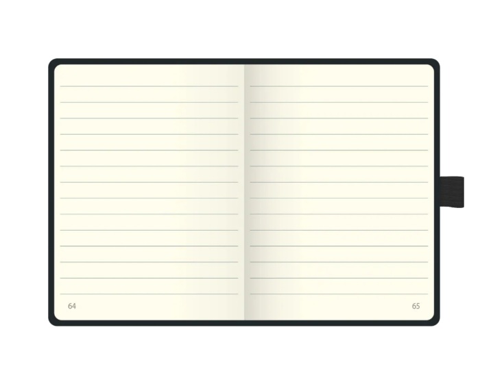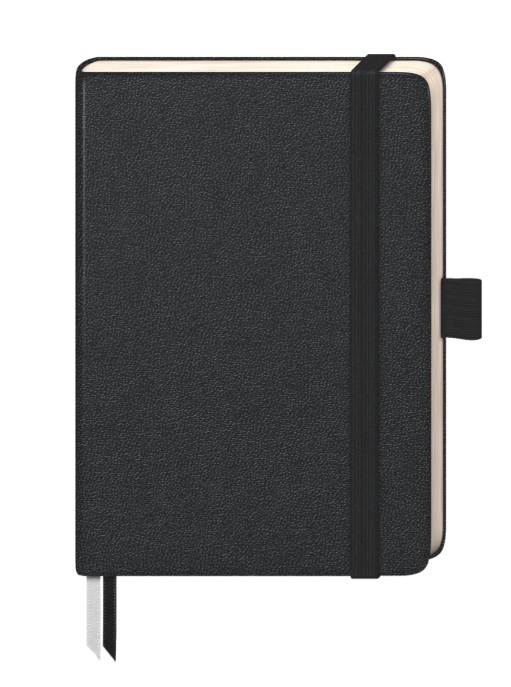 Užrašinė 9,5×12,8 cm, 192 puslapiai, numeruoti. Kietas juodas viršelis, siūtas įrišimas. 80 g/m² kreminis popierius, kilpa rašikliui.Prekės parametrai