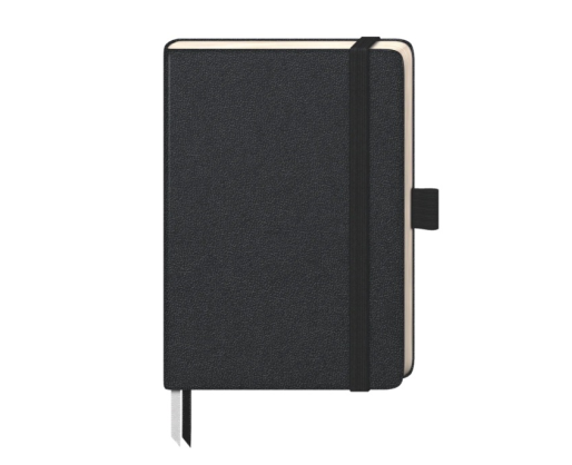 Užrašinė 9,5×12,8 cm, 192 puslapiai, numeruoti. Kietas juodas viršelis, siūtas įrišimas. 80 g/m² kreminis popierius, kilpa rašikliui.