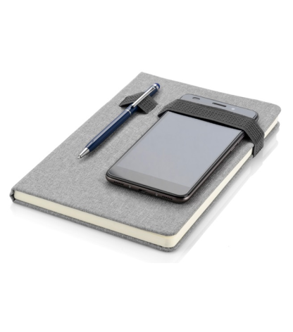 Orvix RPU užrašų knygelė A5 formato, aptraukta tekstūruotu poliesteriu ir perdirbta PU oda.